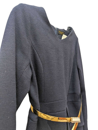Wool silk lined side zip 3 gold buttons on left bottom pencil