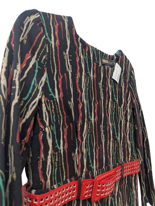 Wool silk lined back zip 3 gld buttons on back slit pencil